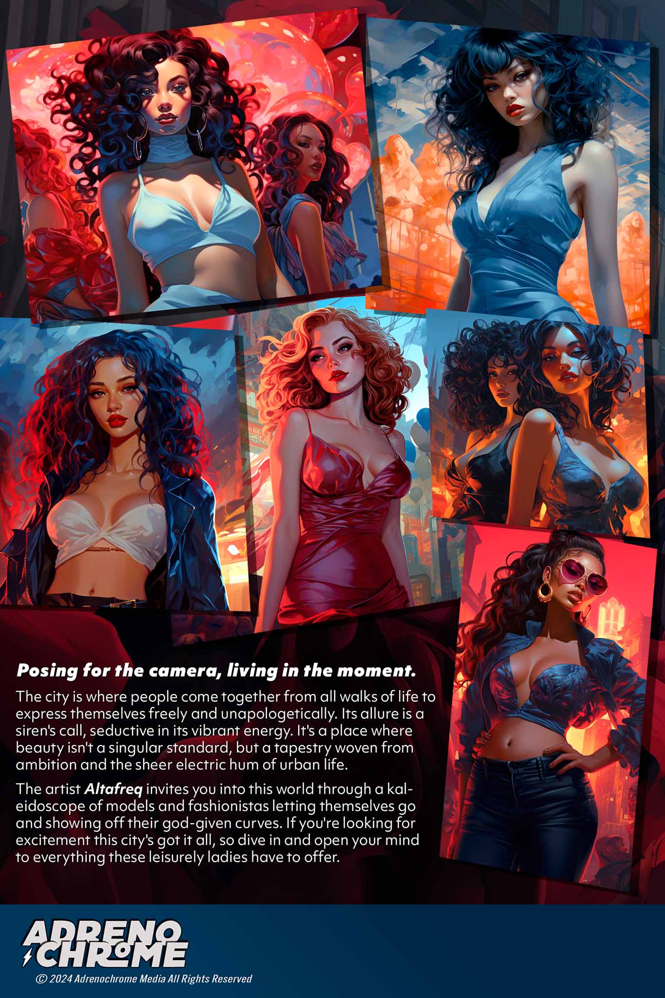 The artist Atmafreq invites you into this world through a kaleidoscope of models and fashionistas letting themselves go and showing off their god-given curves. If you're looking for excitement this city's got it all, so dive in and open your mind to everything these leisurely ladies have to offer.