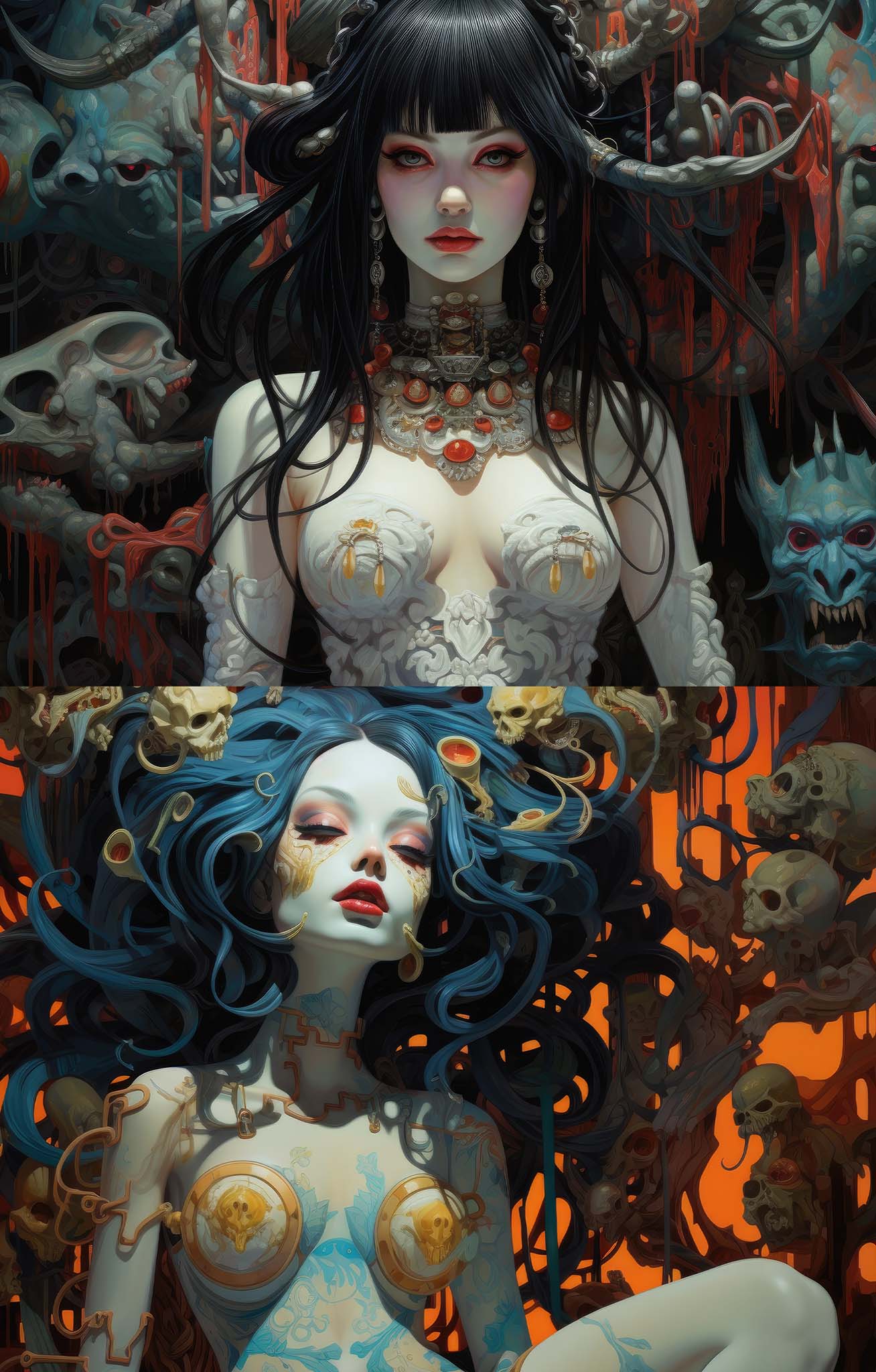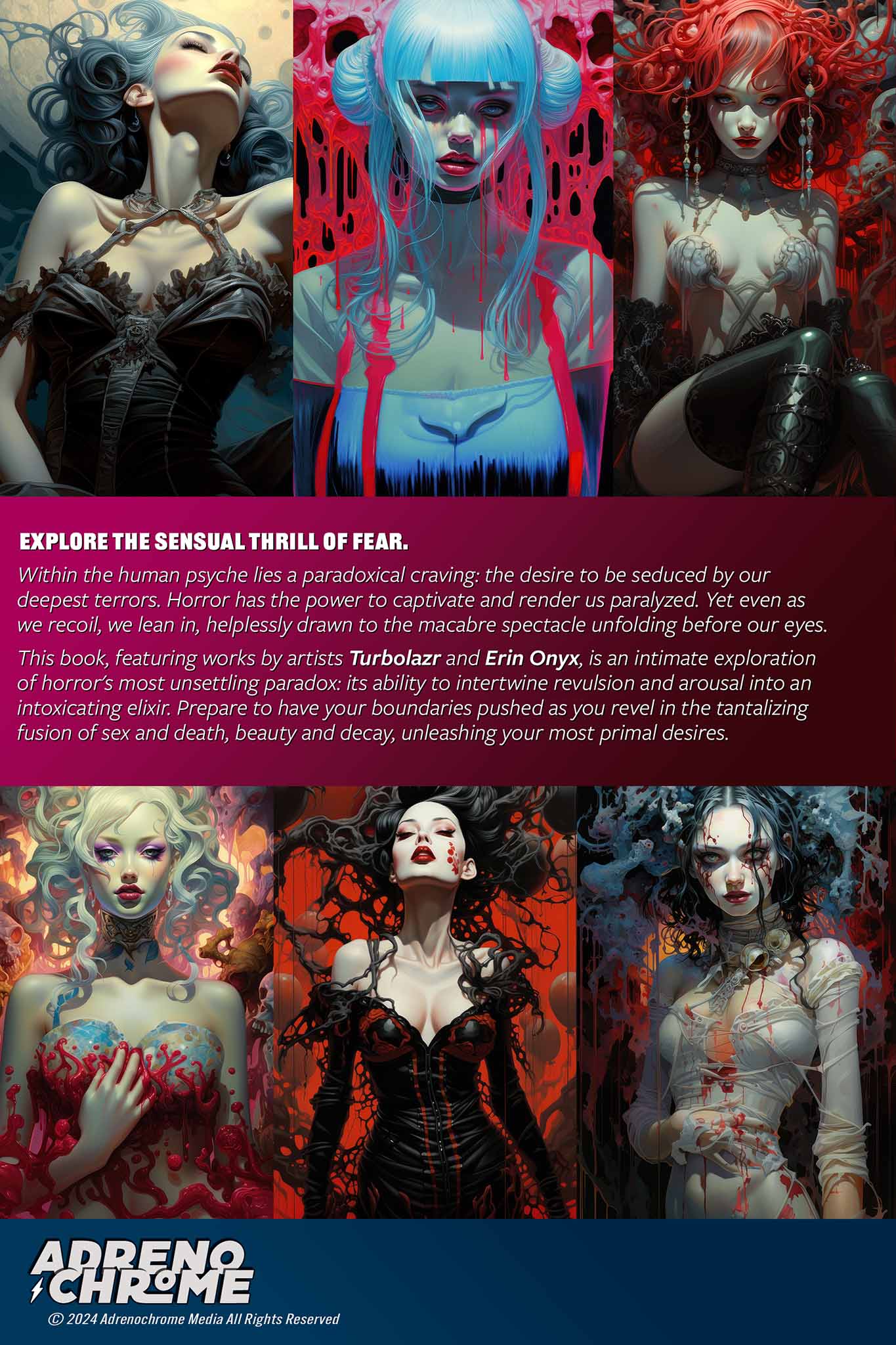 HORRORPOP, featuring works by artists Turbolazr and Erin Onyx, is an intimate exploration of horror's most unsettling paradox: its ability to intertwine revulsion and arousal into an intoxicating elixir. Prepare to have your boundaries pushed as you revel in the tantalizing fusion of sex and death, beauty and decay, unleashing your most primal desires.