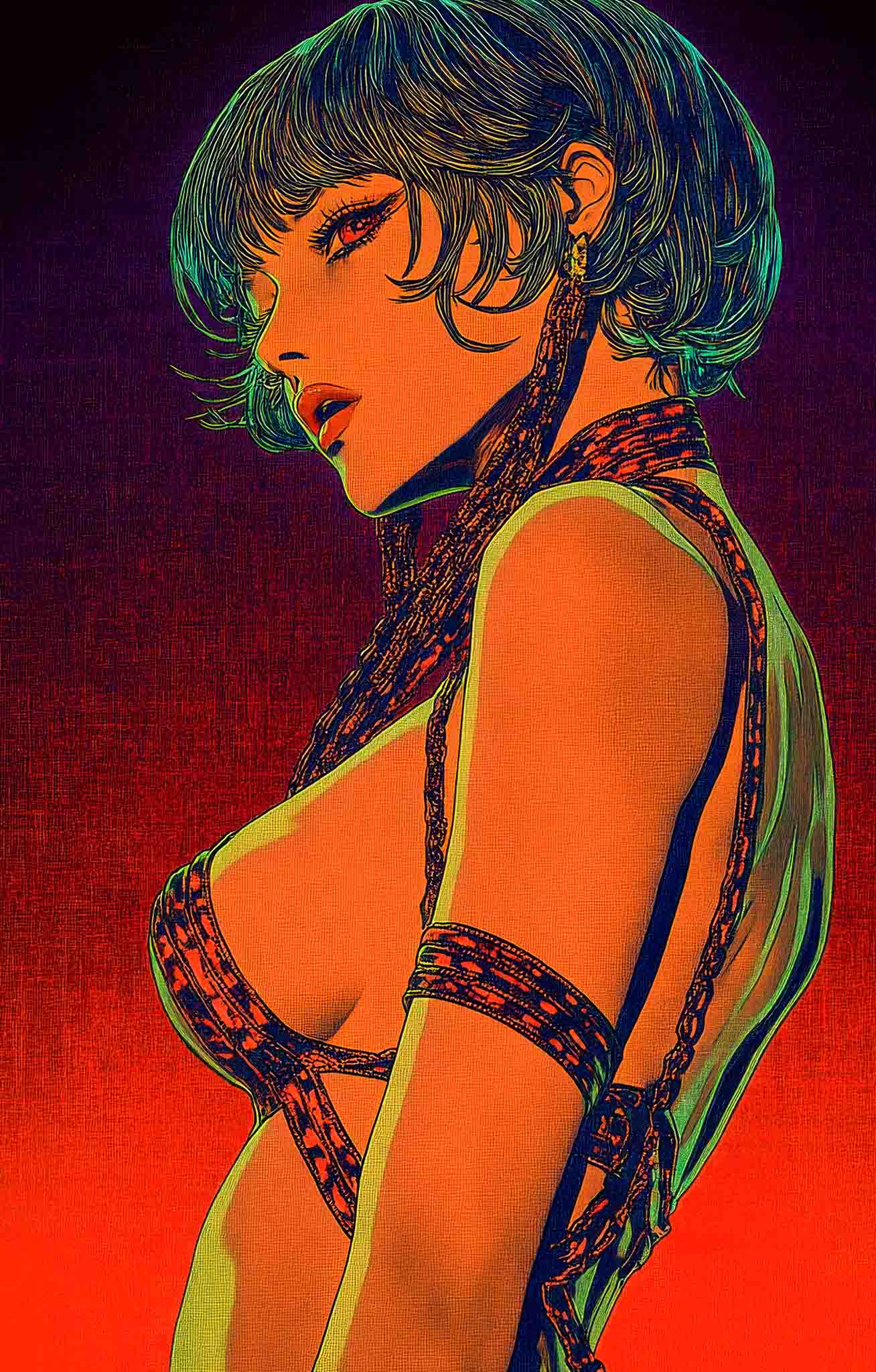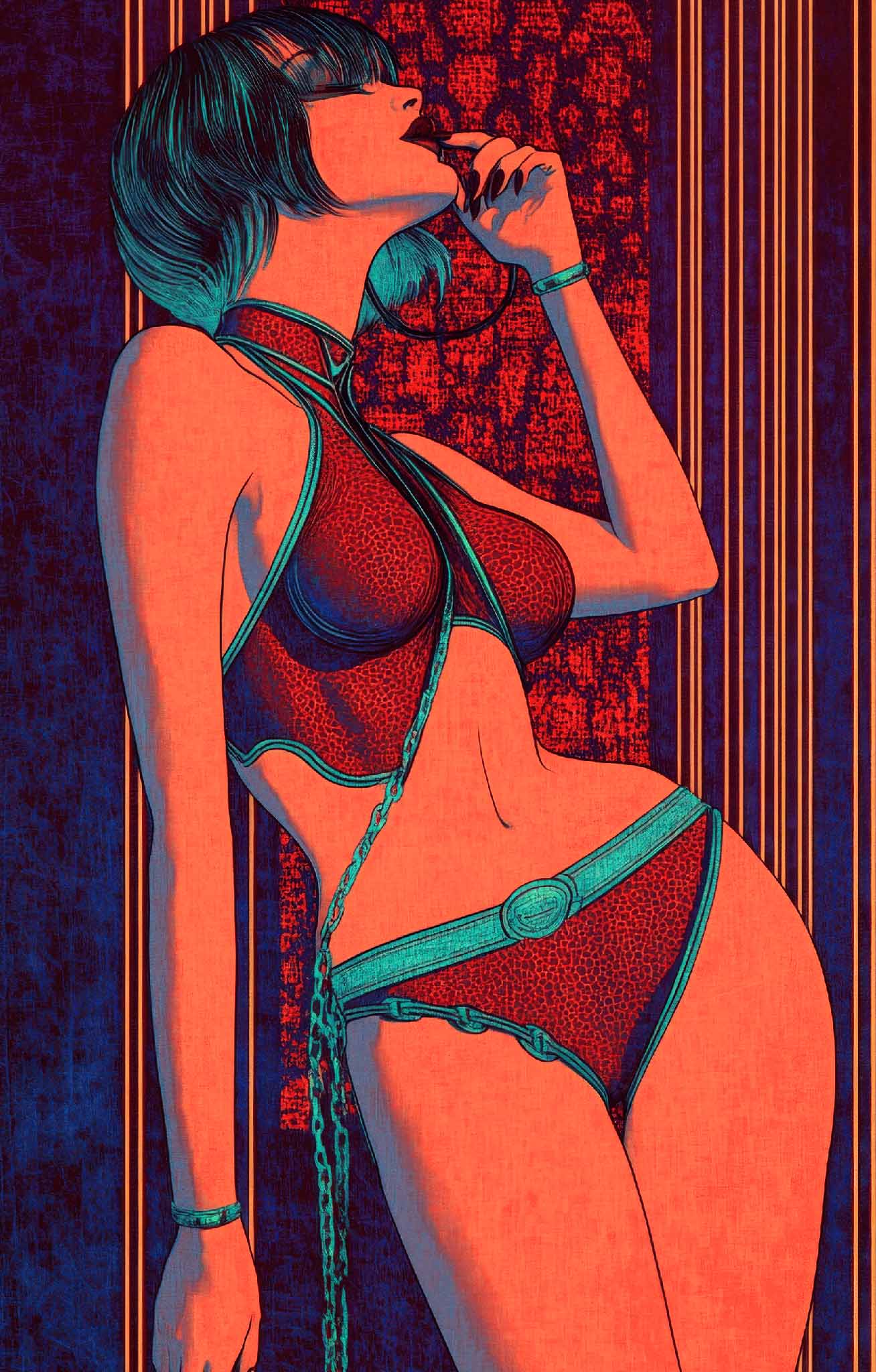 Step into SPEAKEASY, a world where the spirits flow freely and the women are as bold as the art deco lines that define them. In this evocative collection, artist Turbolazr transports you to a time of underground decadence, secret soirees, and unrestrained elegance.